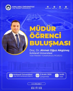 ![]() | VİZE MESLEK YÜKSEKOKULU MEZUN–ÖĞRENCİ BULUŞMALARI GERÇEKLEŞTİRİLDİ 01/12/2025 38 Okunma Vize Meslek Yüksekokulu Mezun–Öğrenci Buluşmaları Gerçekleştirildi
