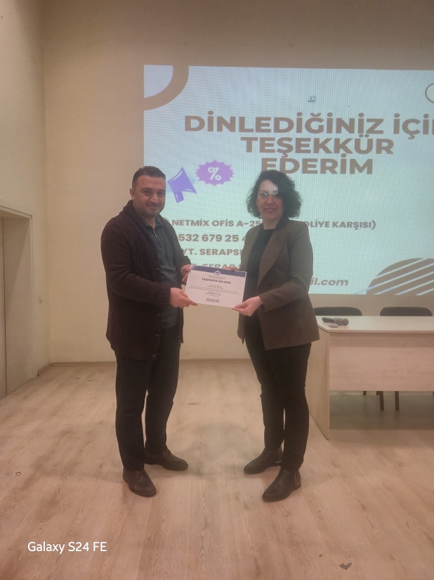 Akademik ve idari personelimiz ile öğrencilerimizin katıldığı etkinlik, yüksekokul müdürümüz Doç. Dr. Ahmet Oğuz Akgüneş’in Sayın Sefünç’e teşekkür belgesi takdim etmesiyle son buldu.