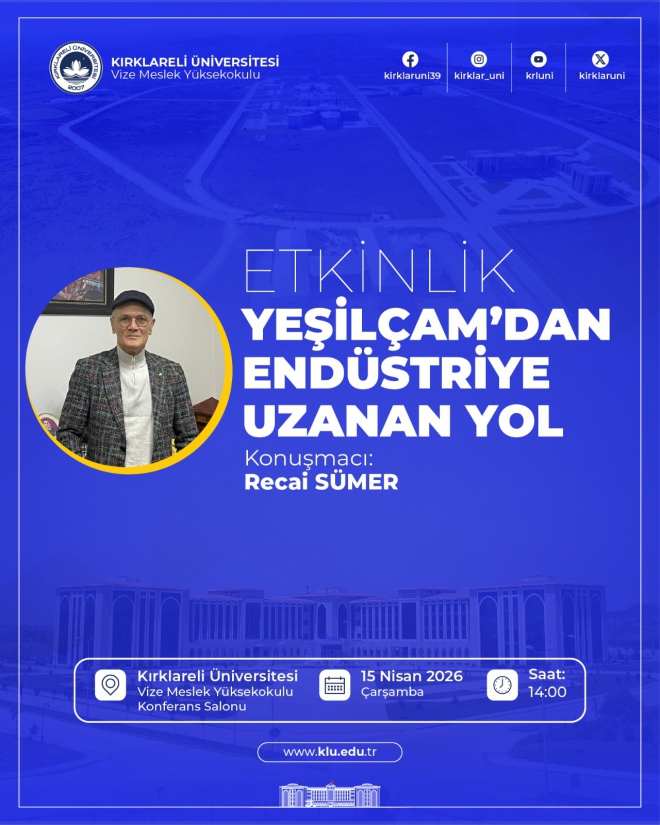 Recai Sümer’in konuşmacı olarak yer alacağı etkinliğe tüm akademik ve idari personelimiz ile öğrenciler davetlidir.